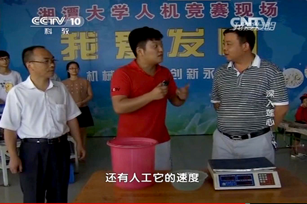 三翼新聞?dòng)?/span>(實(shí)習(xí)記者 王聰艷)10月17日,央視教育頻道《我愛發(fā)明》欄目播放了湘潭大學(xué)機(jī)械學(xué)院教授馬秋成發(fā)明和改進(jìn)全自動(dòng)蓮子去心機(jī)的全過程。 “湘蓮甲天下,潭蓮冠湖湘”。湘潭市蓮子素來(lái)以粒大飽滿,質(zhì)地細(xì)膩,清香鮮甜聞名。但千年來(lái),湘蓮的蓮子去心生產(chǎn)始終是傳統(tǒng)人工方法。工人通過鋒利的鉆頭來(lái)去除堅(jiān)硬的蓮心,雖然操作簡(jiǎn)便,但這鐘種方法不僅費(fèi)時(shí)費(fèi)力,效率低下,而且存在極大的危險(xiǎn)性。在這種情況下,土生土長(zhǎng)的馬教授決心改變這種傳統(tǒng)的去心方式。 馬教授的一代機(jī)是利用鏈條轉(zhuǎn)動(dòng)來(lái)移動(dòng)蓮子,通過高速旋轉(zhuǎn)的鉆頭來(lái)去除蓮子。但在一代機(jī)的生產(chǎn)過程中易出現(xiàn)鉆頭打偏的問題,并且蓮心易被污染。在經(jīng)過幾天深思之后,馬教授改進(jìn)了一代機(jī),于是二代機(jī)誕生了。二代機(jī)相較于一代機(jī),蓮子的出產(chǎn)量、打孔精確度都有了明顯的提高,但是由于蓮子大小不一以及鉆頭旋轉(zhuǎn)時(shí)直徑會(huì)擴(kuò)大,因此導(dǎo)致了生產(chǎn)過程中蓮子的浪費(fèi)。 面對(duì)手工工人“這機(jī)器一定有問題,不行”的咄咄逼人,馬教授卻表示自己有信心,自己已發(fā)現(xiàn)了不足,他相信自己會(huì)改好二代機(jī)!幾日后,在琴湖食府人機(jī)大戰(zhàn)拉開了帷幕。八名人工對(duì)戰(zhàn)機(jī)器。改良后的三代機(jī)通過調(diào)節(jié)蓮子位置的壓板,在數(shù)量和質(zhì)量口感上贏過了人工。最終,馬教授的全自動(dòng)蓮子去心機(jī)贏得了比賽!