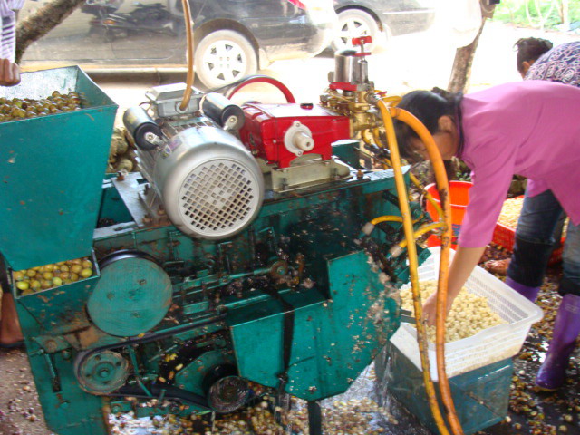 近日,由縣科技局資助引進二臺蓮子剝殼去膜一體機在黃埠陳余中試,喜獲成功,深受賢河、大余、陳余、桂陽沿線四個村的蓮農(nóng)的歡迎。該機已24小時全天候運行了一個星期,真正實現(xiàn)了蓮子一次性脫殼去膜的機械化、工廠化加工,從測試的效果看每小時可加工蓮子30公斤,脫殼率達97%以上、脫皮率95%以上、破損率在3%以下。該產(chǎn)品顛覆了傳統(tǒng)的蓮子脫殼去膜機理,采用自動定位、定時、皮帶輸送、單粒切割、彈性擠壓脫殼,高壓水流柔性摩擦去皮,整個過程一體化完成。